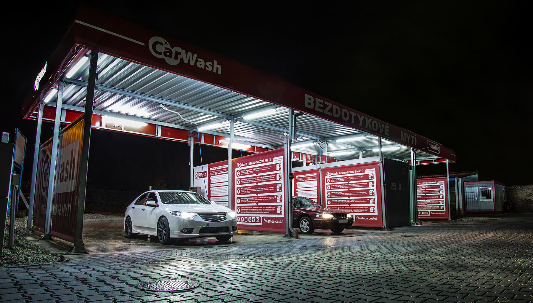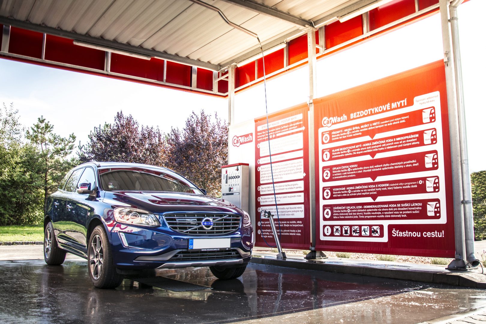 Washing stand separators – PVC advertising banners with washing guide.