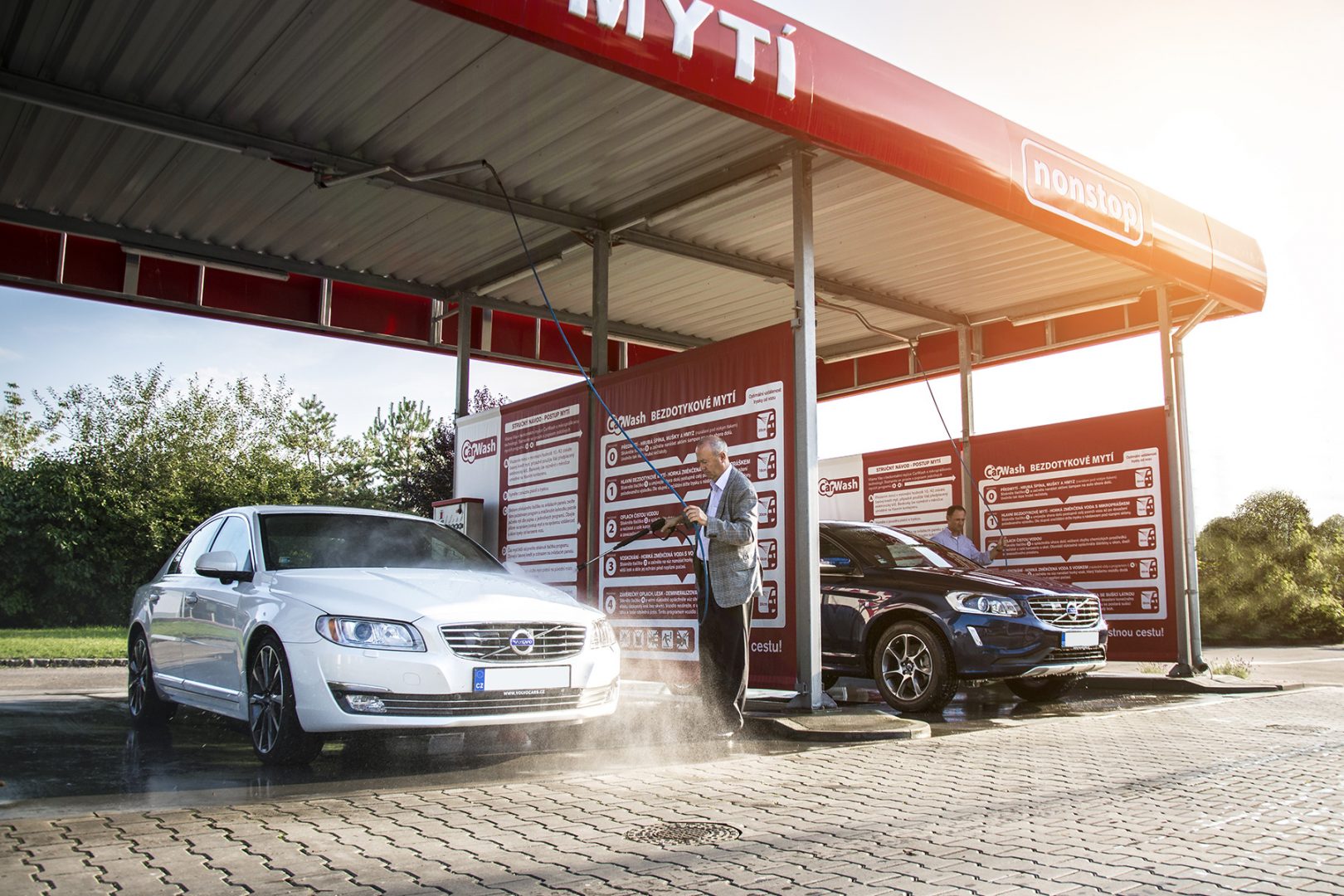 The frame of the car wash technique is made of stainless steel.